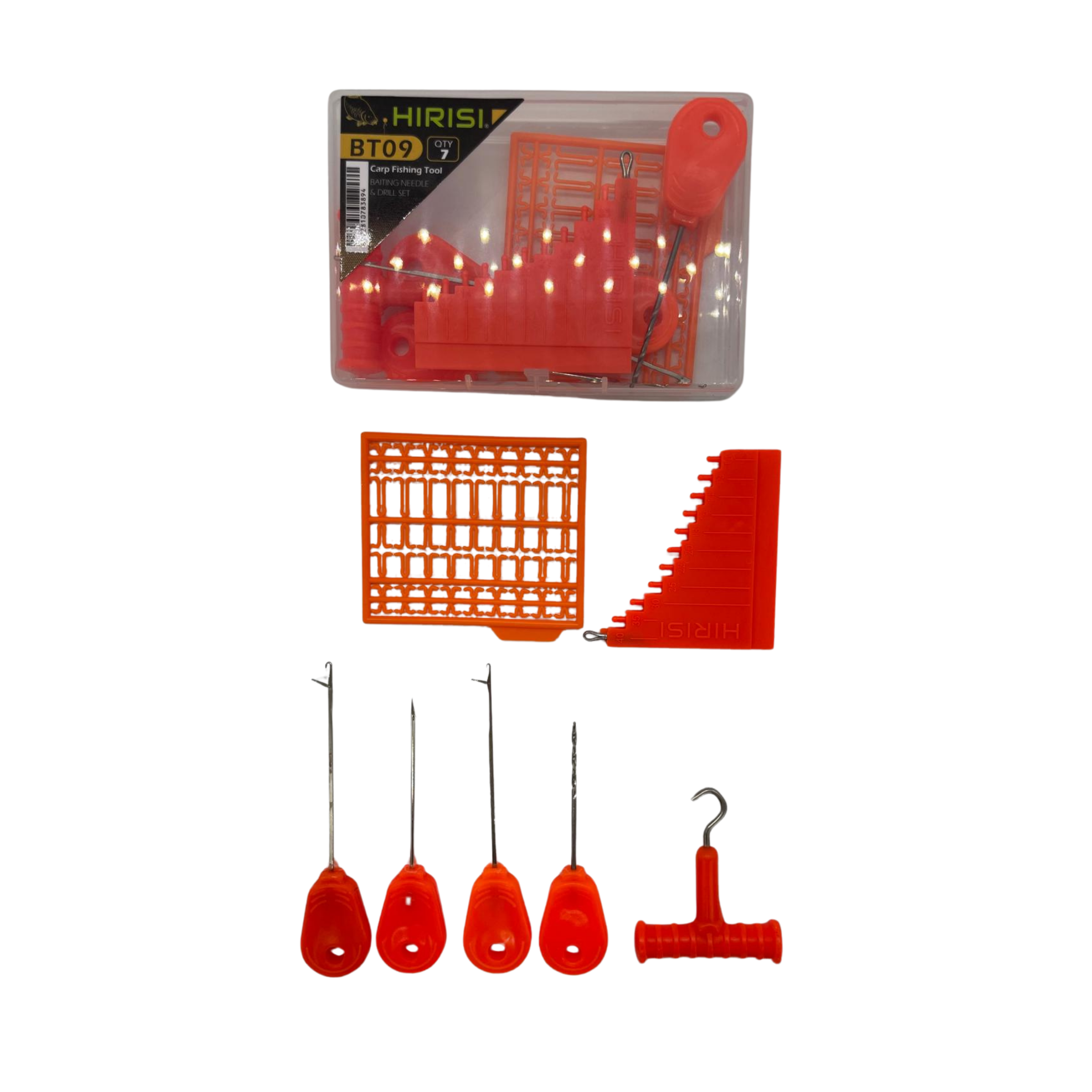 Hirisi BT09 Carp Fishing Tool Set, balıkçılıkla ilgilenen herkesin takım çantasında mutlaka bulunması gereken profesyonel bir yem takma ve bağlama setidir. Özellikle sazan avı için tasarlanmış olan bu set, yem hazırlama ve olta düzenleme işlemlerini hızlı, güvenli ve kolay hale getirir.